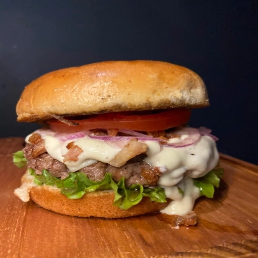 2 Carnes de Picanha 90g cada, Delicioso Pão brioche , 2 fatias de Muçarela, Tomate seco, Bacon e nosso incrível molho... Ver completo