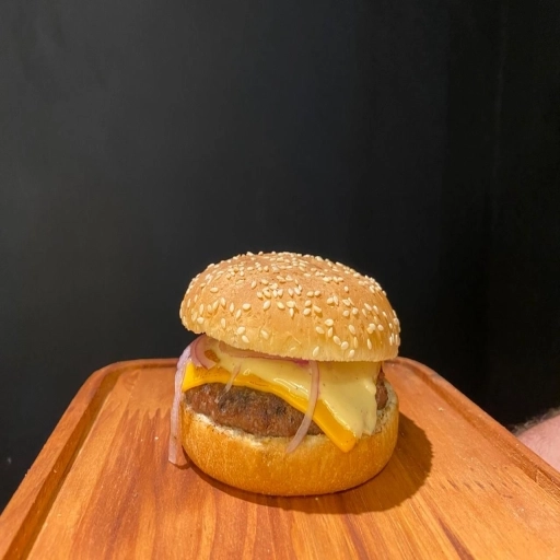 1 Carne vegetal de 110g, Pão Brioche, cheddar, Cebola cryspe, Alface e molho defumado.